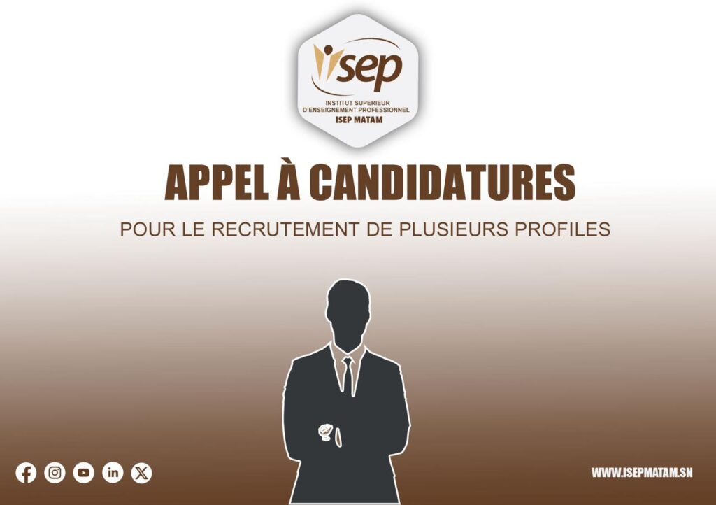 Prolongation de la date clôture des candidatures jusqu’au 15 janvier 2026 à 12h00 Recrutement d’Enseignant(e)s Formateur(trice)s. Recrutement d’un(e) Responsable de Communication